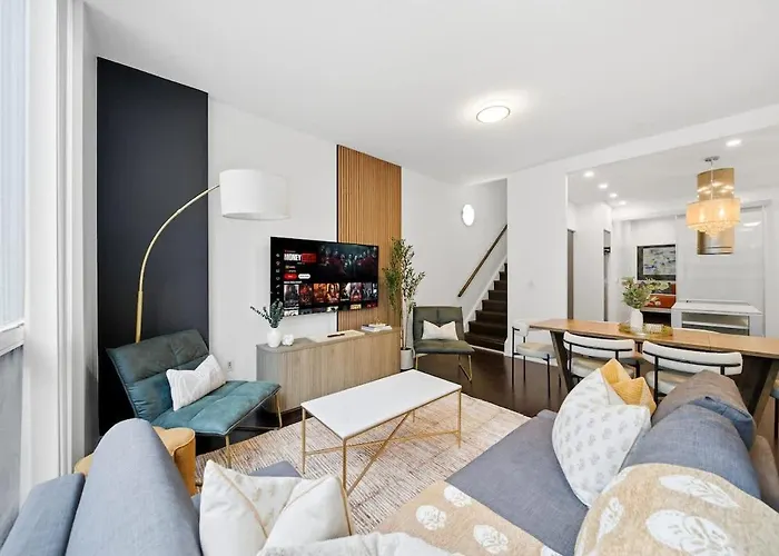 La villa nel quartiere Centro di Toronto di Toronto si trova a una distanza di 2 km dal Municipio di Toronto e a una distanza di 2,1 km da luoghi di shopping come il St Lawrence Market. Questa casa vacanze è ubicata a circa 10 minuti in macchina dall'Università di Toronto e anche a breve distanza da Fort York National Historic Site. La Lux Harbourfront Home Sleeps 10 With Free Parking offre un facile accesso a meraviglie naturali come il Parco dell'isola di Toronto (2,2 km) e il Parco Riverdale Farm (4 km).